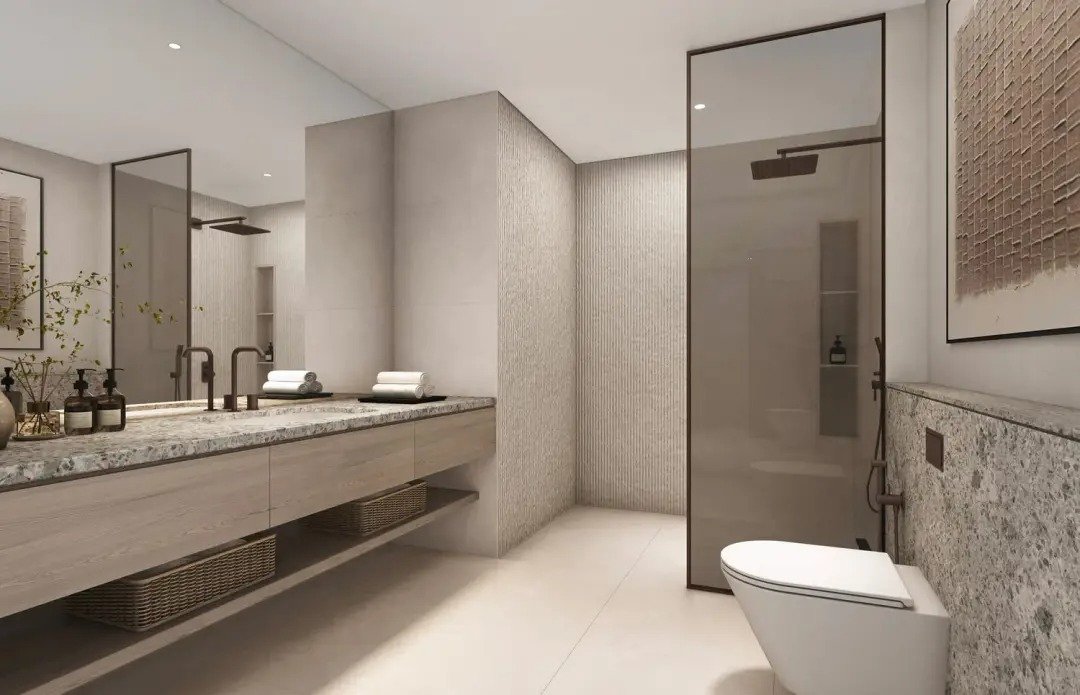 Interiors are finished with warm timber, brushed metal, and tactile stone, forming a refined palette that feels both luxurious and comforting. Kitchens feature premium European appliances and elegant joinery, while smart storage, silent ventilation, and wellness-focused features enhance comfort throughout the home. Spa-inspired bathrooms, floor-to-ceiling windows, and seamless sightlines complete the picture, offering a level of craftsmanship that brings clarity, beauty, and ease to everyday living.